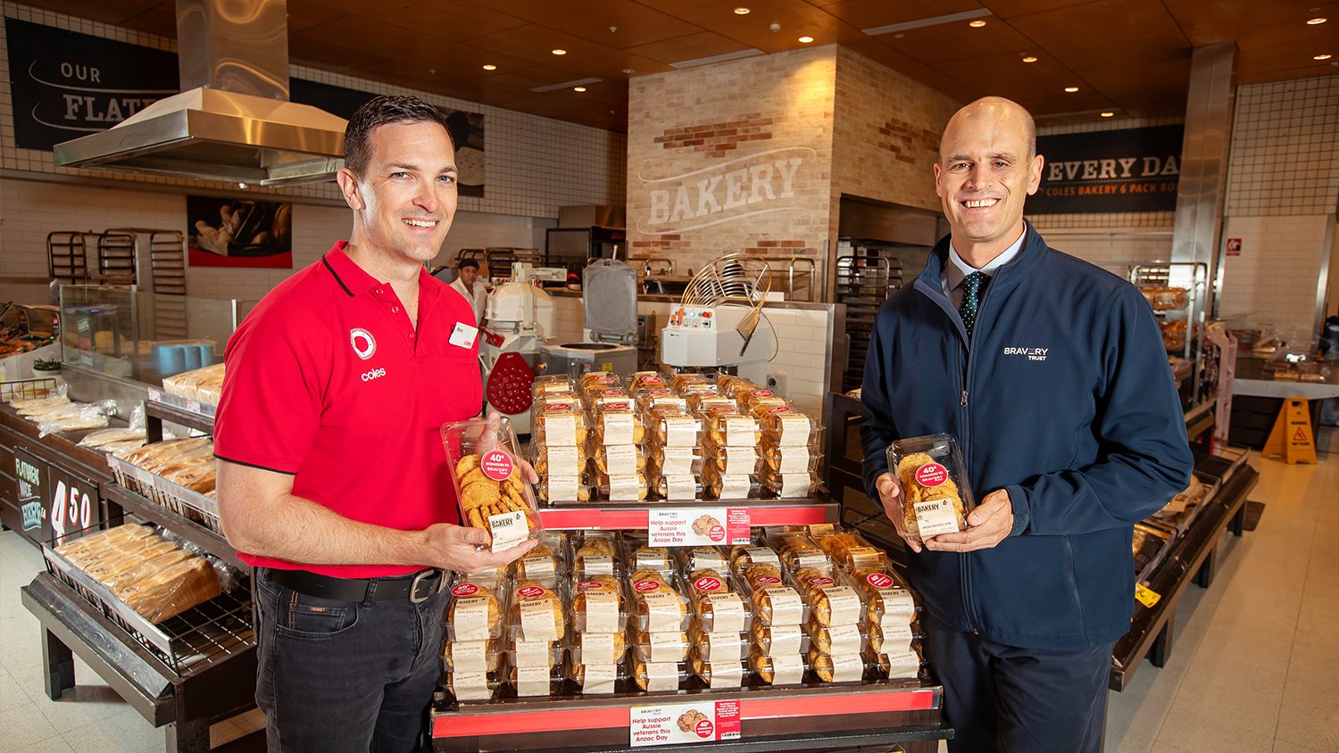 Coles Anzac biscuits are being transformed into creative recipes including golden syrup pancakes and ice cream sandwiches. Between now and 28 April, 40 cents from every 12-pack of Coles Anzac biscuits sold supports Bravery Trust, which assists veterans. Michael Weldon demonstrates how to make golden syrup-infused pancakes topped with crushed Anzac biscuits and ice cream sandwiches using the classic biscuits with various fillings like jam and caramel sauce.